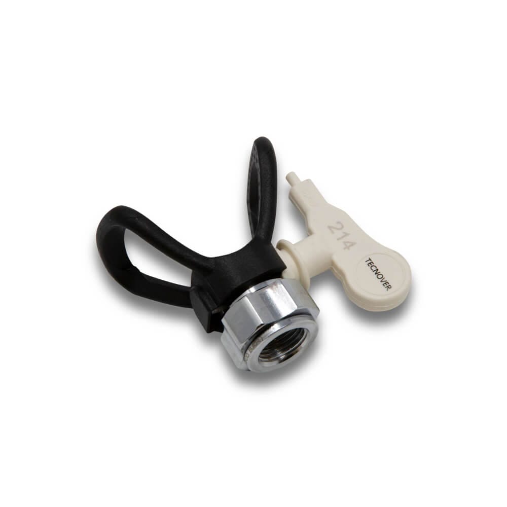 Kit consisting of base and self-cleaning nozzle TECNOVER Paintip Fine Finish: easy to assemble, no keys required.